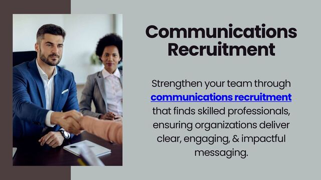 1. Communications Recruitment Strengthen your team through communications recruitment that finds