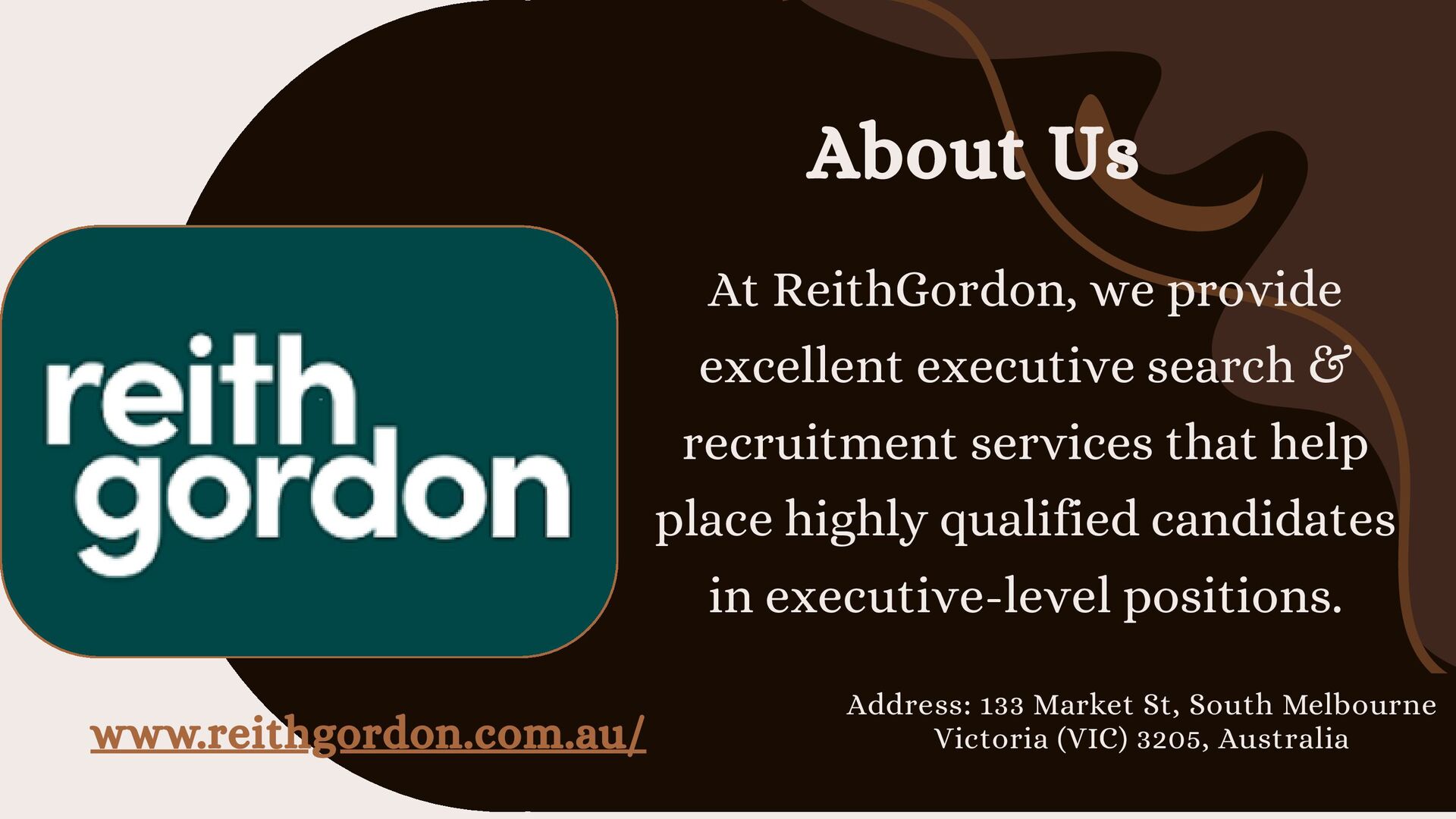 recruitment services that help place highly qualified candidates in executive-level positions. www.reithgordon.com.au/ Address: 133 Market St, South Melbourne Victoria (VIC) 3205, Australia