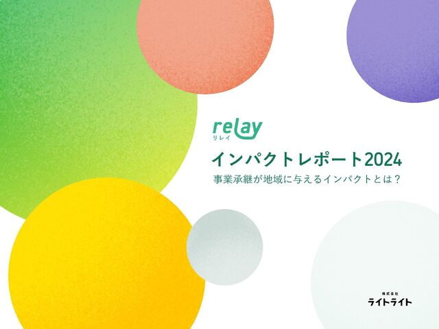 事業承継が地域にもたらす効果を定量・定性の指標でまとめた「relay インパクトレポート2024 〜事業承継が地域に与えるインパクトとは?〜」を全ページ公開いたします。