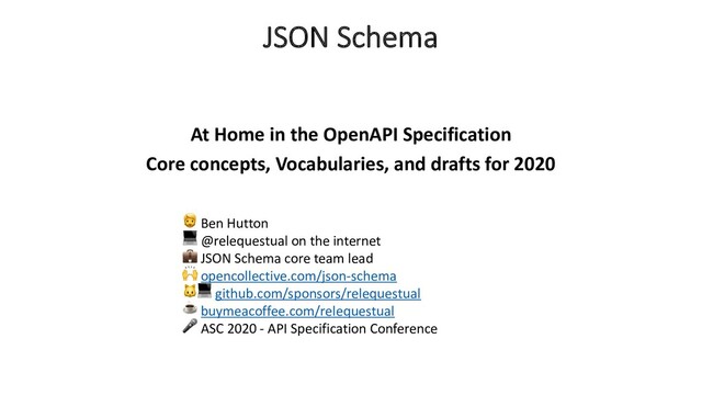I'll go over some of the core foundational concepts of JSON Schema, briefly discuss 2019-09 / 2020-NN new features, and explain why the Vocabularies concept is key for extensibility beyond validation.