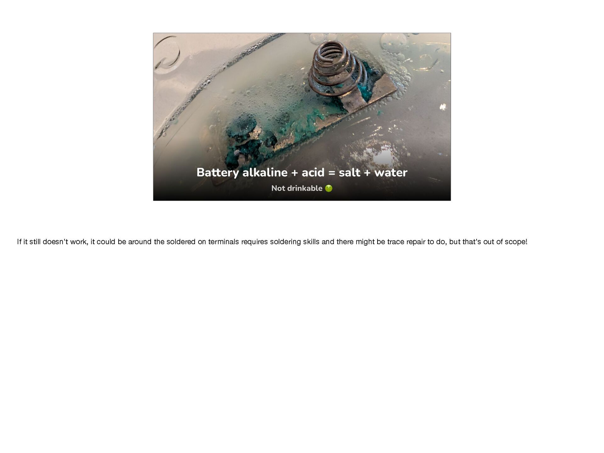 🤢 If it still doesn't work, it could be around the soldered on terminals requires soldering skills and there might be trace repair to do, but that's out of scope!