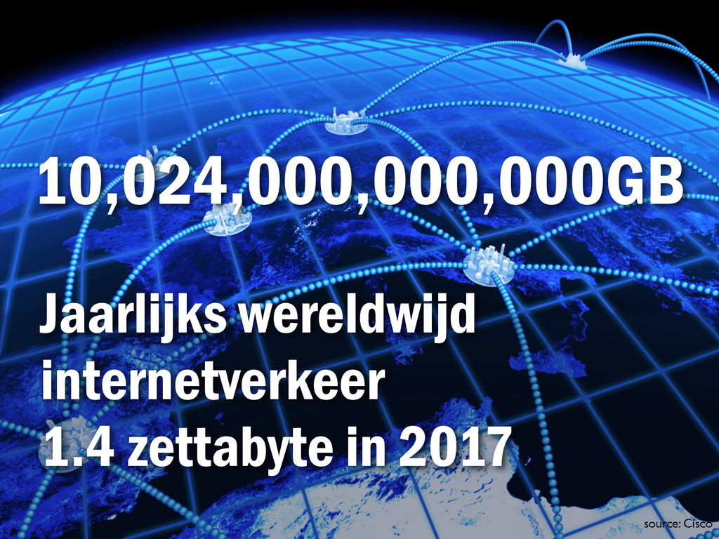 source: Cisco Jaarlijks wereldwijd internetverkeer 1.4 zettabyte in 2017 10,024,000,000,000GB