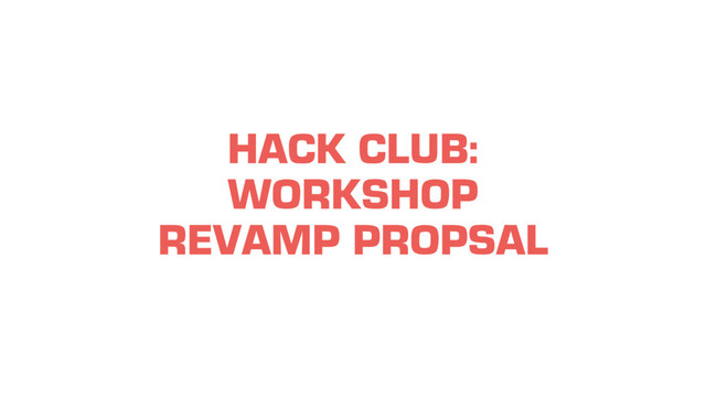 CURRICULUM • Ideas, partially finished, etc. • Ideas may be unmaintained • Every workshop, including official/staff- made, starts in the sandbox • Encourages community to propose ideas • Encourages cross-club collaboration • Move Ajar.io and Maze here initially • Finished workshops • Meet a standard of quality, “endorsed” by Hack Club • Maintained by community • Can be “expansions” of topics in our official curriculum • As official curriculum evolves over time, curriculum workshops may be transferred to the community • Finished workshops • Meet highest standard of quality • Fits into our curricular plans • Actively maintained by staff • Will still have community involvement • What we’ll initially market to clubs to present and teach