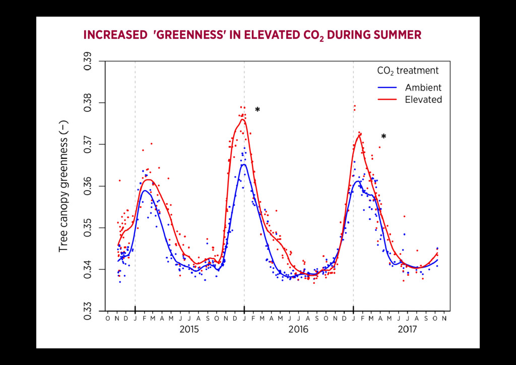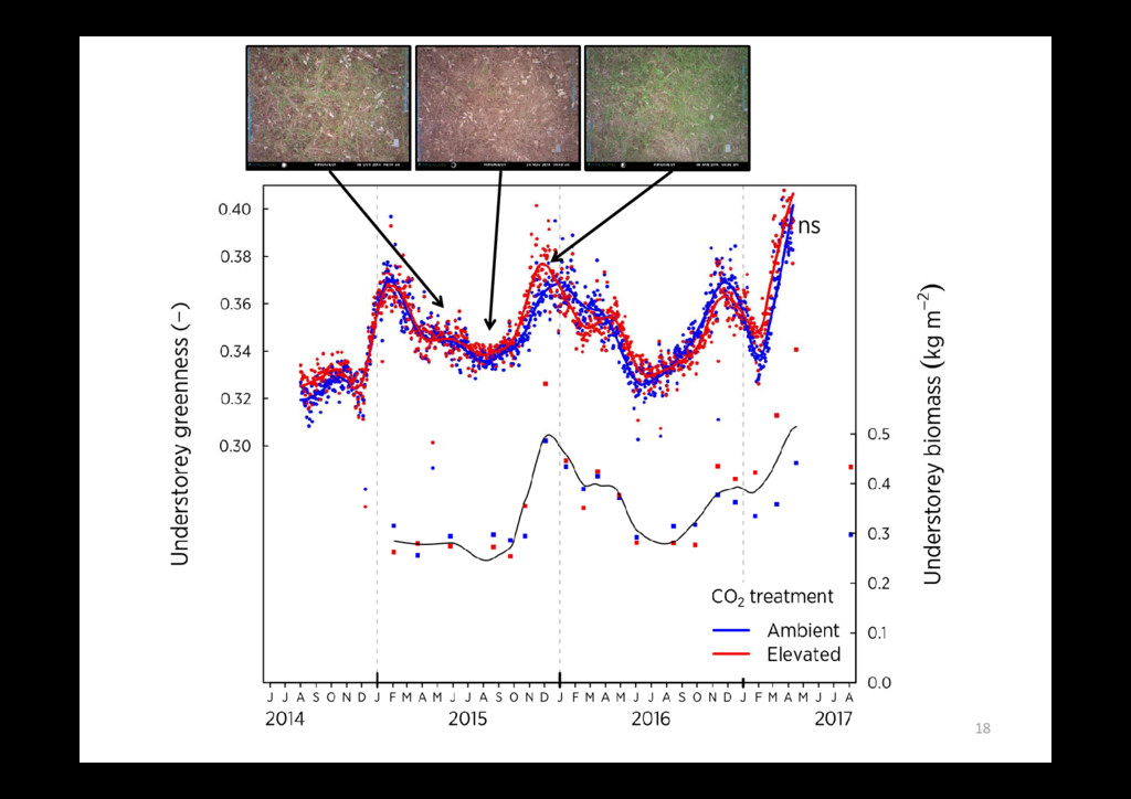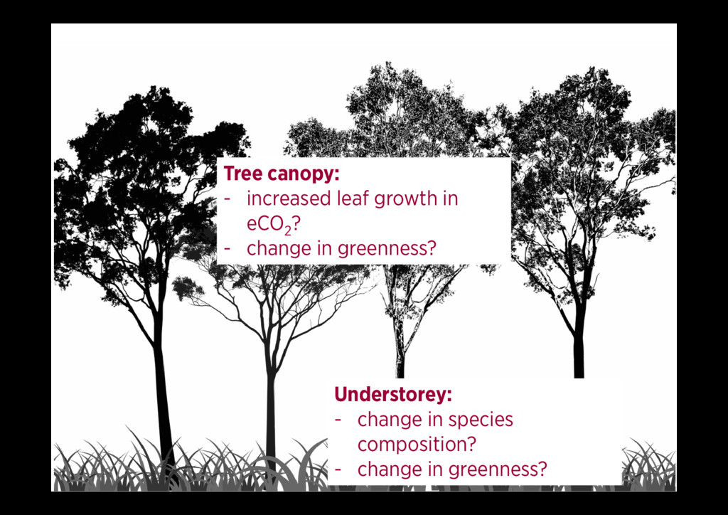 CO2 stimulates leaf photosynthesis • Is this extra carbon is used to grow more leaves (in the canopy or in the understorey)? 2 CO2 ↑ Forest C uptake ↑ Forest leaf area ↑ Even more uptake?