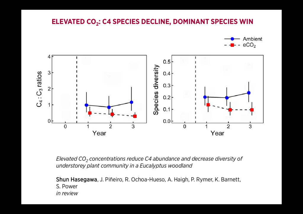 understorey plant community in a Eucalyptus woodland Shun Hasegawa, J. Piñeiro, R. Ochoa-Hueso, A. Haigh, P. Rymer, K. Barnett, S. Power in review ELEVATED CO2 : C4 SPECIES DECLINE, DOMINANT SPECIES WIN