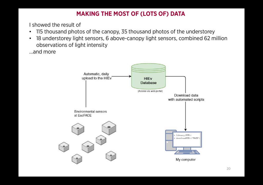 the result of • 115 thousand photos of the canopy, 35 thousand photos of the understorey • 18 understorey light sensors, 6 above-canopy light sensors, combined 62 million observations of light intensity …and more