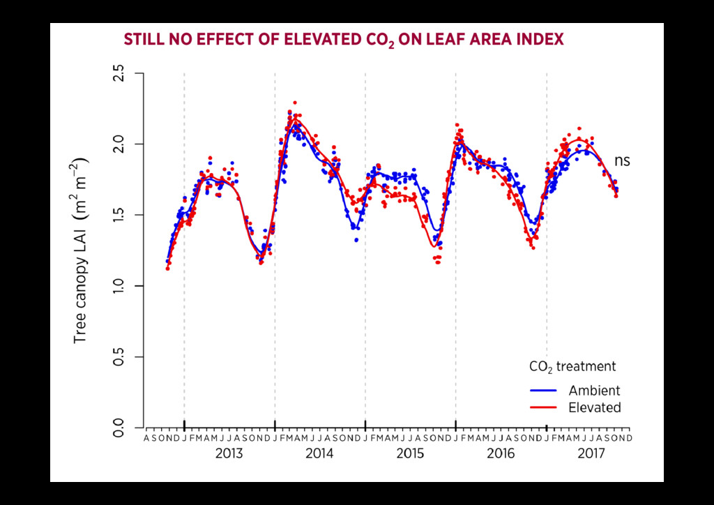 ? • Previous forest FACE experiments have shown a response, sometimes… Duursma 23/10/2017 6 Leaf area index response to eCO2 Leaf area index (control plots)