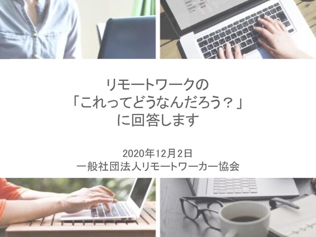 現在、多くの企業や働き手がリモートワークに挑戦している中、「企業への導入ノウハウを知りたい」、「導入にあたり懸念点があり推進できない」(不必要な懸念であることが往々にしてあります。)という声を多数お聞きしてきました。