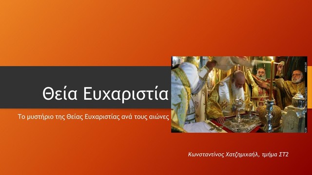 στην οποία παρέδωσε το μυστήριο της Θείας Ευχαριστίας στους μαθητές στον Μυστικό Δείπνο. • Ελληνικά, γλώσσα που γράφτηκαν οι Λειτουργίες των Πατέρων της Εκκλησίας. • Ακολούθησαν μεταφράσεις της Θείας Ευχαριστίας στα λατινικά, στις σλαβικές γλώσσες, στις σύγχρονες ευρωπαϊκές γλώσσες και μέσω της ιεραποστολής, στις αφρικανικές και ασιατικές γλώσσες. Εξέλιξη της γλώσσας του μυστηρίου των Θείων Ευχαριστιών: