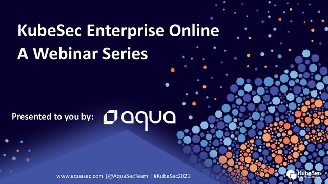 button to the right hand chat menu Questions A recording of this session will be made available to all attendees Recording Feedback on the webinar series, topics you’d like to see, welcome at [email protected] Feedback www.aquasec.com |@AquaSecTeam | #KubeSec2021
