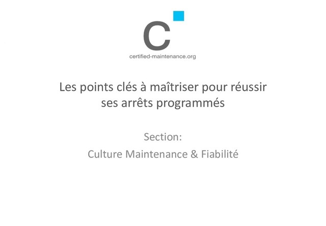 ou tard d’une maintenance en profondeur. De plus, certaines interventions de maintenance ne peuvent se faire que lors d’un arrêt programmé de l’installation. • Les avions sont ainsi complètement démontés et remis à neuf régulièrement. D’autres installations ont besoin d’être arrêtées, révisées et nettoyées chaque semaine. Pour d’autres, des dispositions légales les obligent à être inspectées chaque année ou tous les deux ans. • Afin d’en limiter l’impact négatif sur la production, tous ces arrêts doivent être minutieusement planifiés. • Certaines activités sont prévisibles, mais d’autres sont décidées sur le moment en fonctions de l’état réel des installations. Dès lors, mieux on anticipe « l’imprévisible », plus rapidement et plus durablement peut reprendre la production. • En plus d’un effet positif sur les volumes de production, une gestion minutieuse des arrêts programmés aide bien entendu à comprimer les coûts du processus de maintenance. Copyright certified-maintenance.org 2 Réseau des Responsables Maintenance & Fiabilité des Pays Francophones