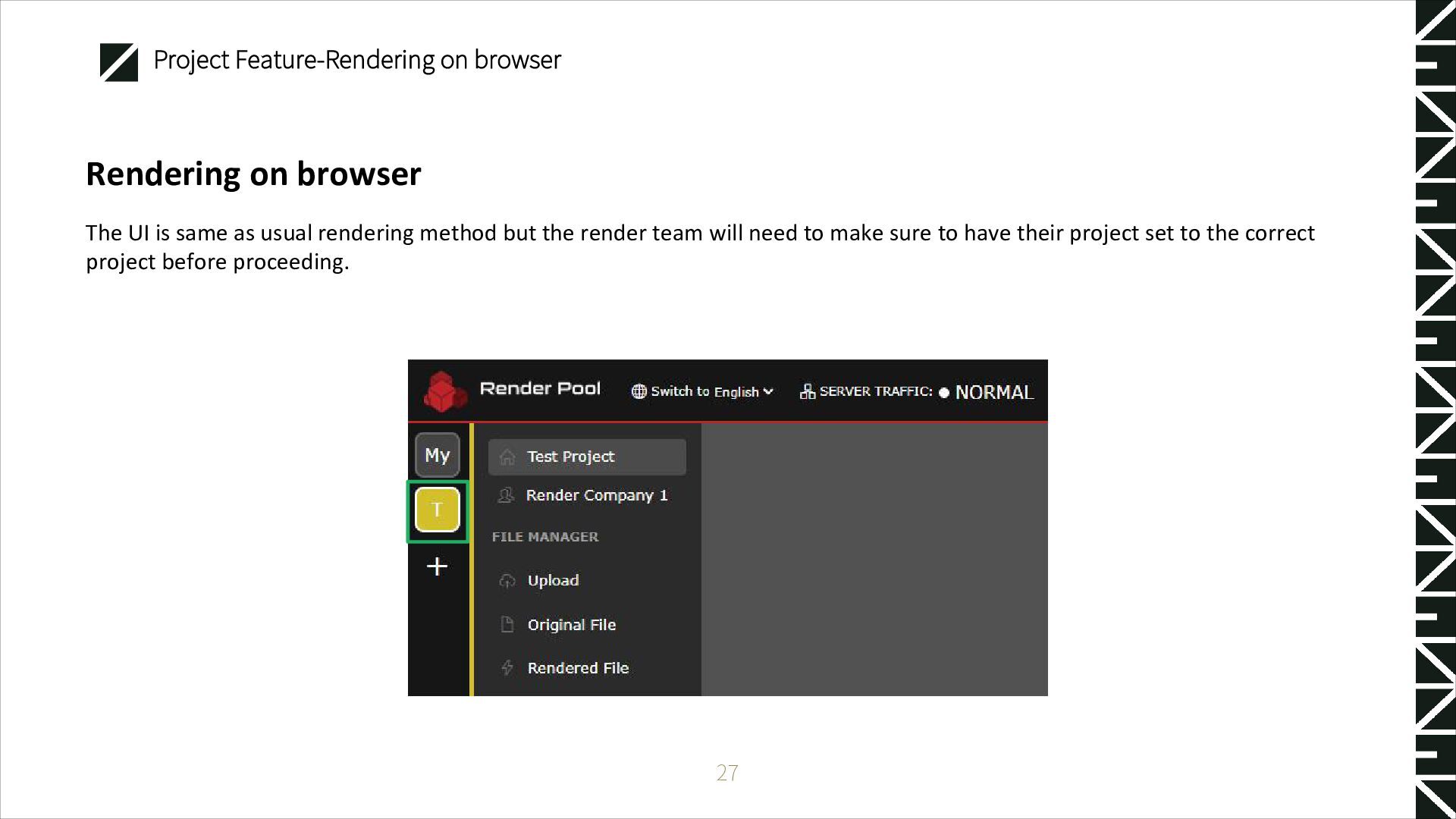 method but the render team will need to make sure to have their project set to the correct project before proceeding. 27 Project Feature-Rendering on browser