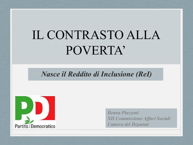 n. 208/2015, il Governo ha emanato un disegno di legge delega (ddl povertà), recante norme relative al contrasto della povertà, al riordino delle prestazioni e al riordino del sistema degli interventi e dei servizi sociali. Il ddl è stato modificato e approvato dalla Camera dei Deputati il 14 luglio del 2016 ed è stato poi approvato definitivamente dal Senato il 15 marzo 2017. La legge 15 marzo 2017, n. 33 disciplina l’introduzione di una misura unica nazionale per il contrasto alla povertà, denominata Reddito di Inclusione (ReI), il riordino delle prestazioni finalizzate al contrasto della povertà e il rafforzamento del coordinamento degli interventi in materia di servizi sociali.
