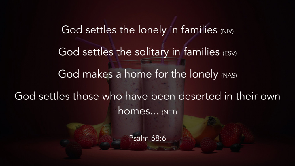 God settles the lonely in families (NIV) God settles the