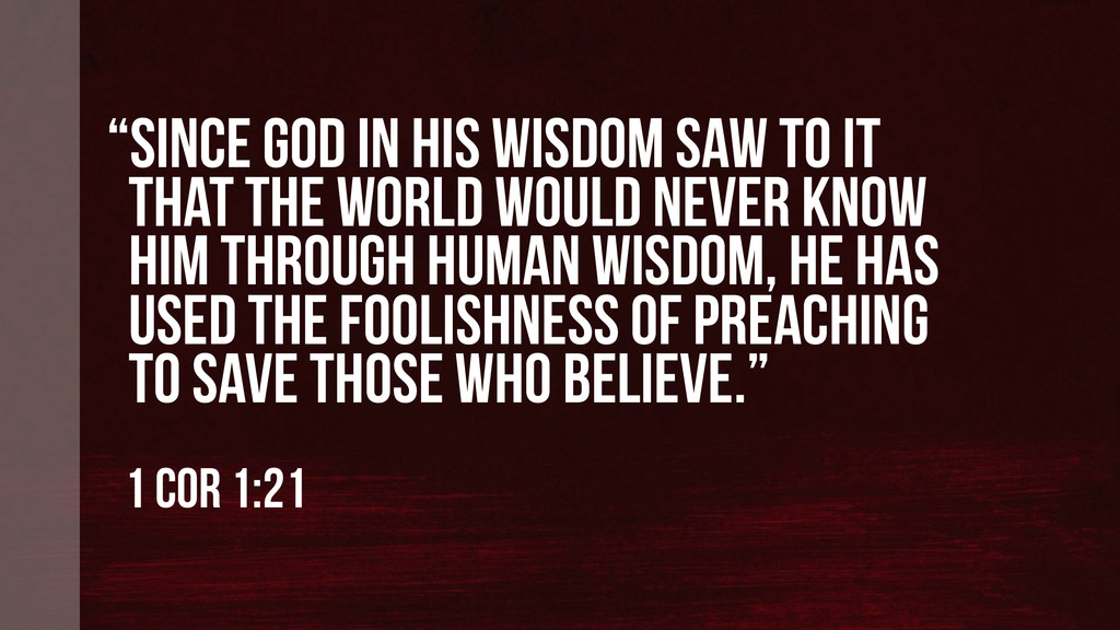world would never know Him through human wisdom, He has used the foolishness of preaching to save those who believe.” 1 COR 1:21