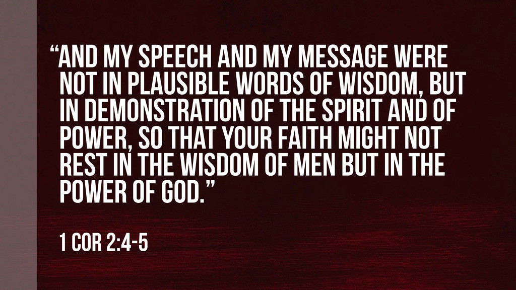 words of wisdom, but in demonstration of the Spirit and of power, so that your faith might not rest in the wisdom of men but in the power of God.” 1 COR 2:4-5