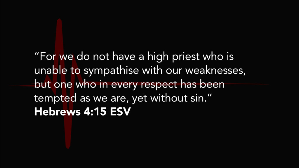 unable to sympathise with our weaknesses, but one who in every respect has been tempted as we are, yet without sin.” Hebrews 4:15 ESV