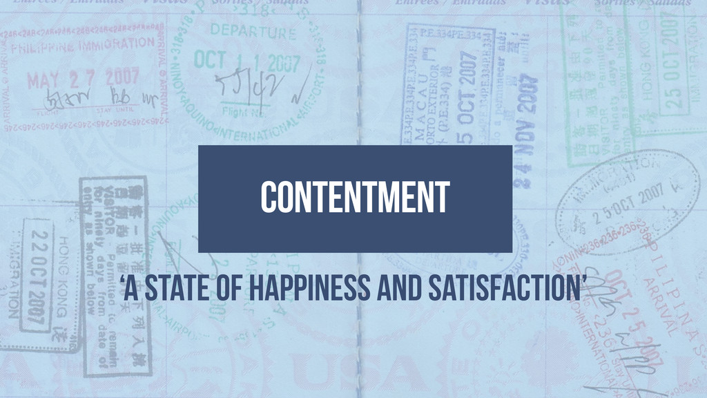 CONTENTMENT ‘A state of happiness and satisfaction’