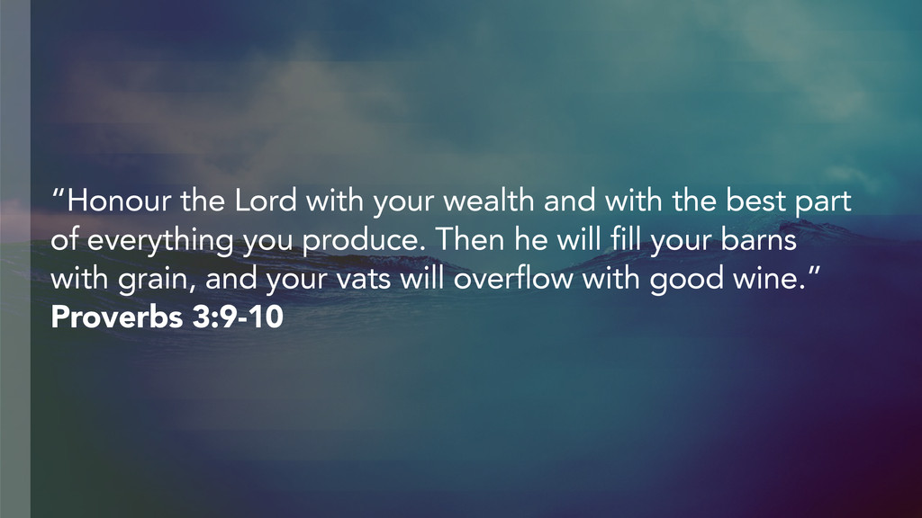 part of everything you produce. Then he will fill your barns with grain, and your vats will overflow with good wine.” Proverbs 3:9-10