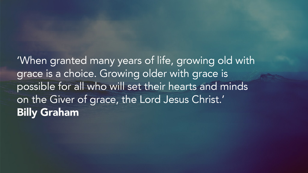 is a choice. Growing older with grace is possible for all who will set their hearts and minds on the Giver of grace, the Lord Jesus Christ.’ Billy Graham