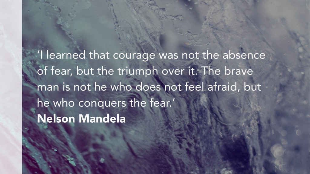 but the triumph over it. The brave man is not he who does not feel afraid, but he who conquers the fear.’ Nelson Mandela