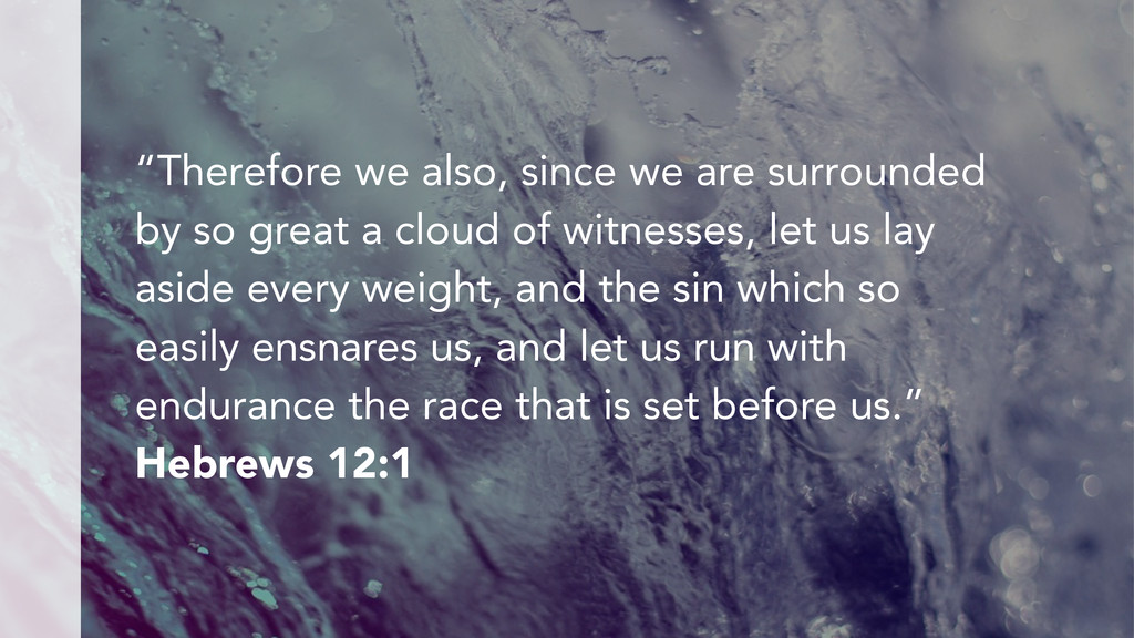 a cloud of witnesses, let us lay aside every weight, and the sin which so easily ensnares us, and let us run with endurance the race that is set before us.” Hebrews 12:1