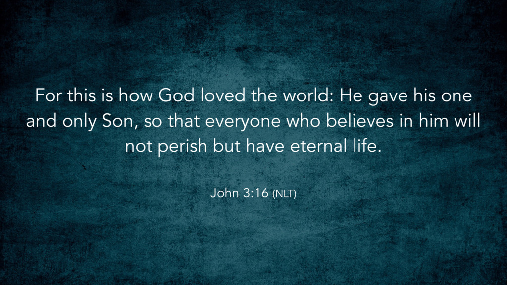 his one and only Son, so that everyone who believes in him will not perish but have eternal life. John 3:16 (NLT)