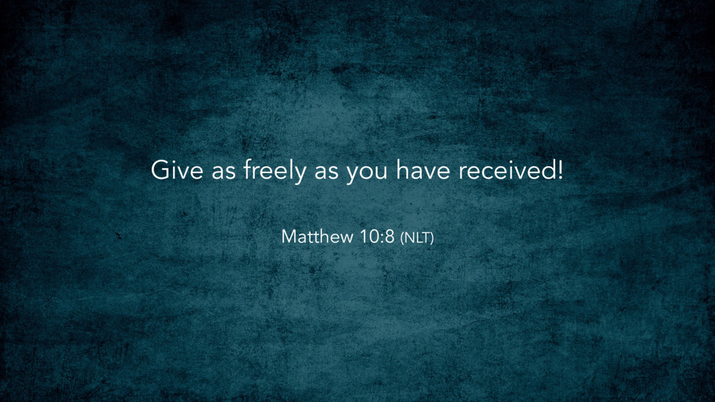 Give as freely as you have received! Matthew 10:8 (NLT)