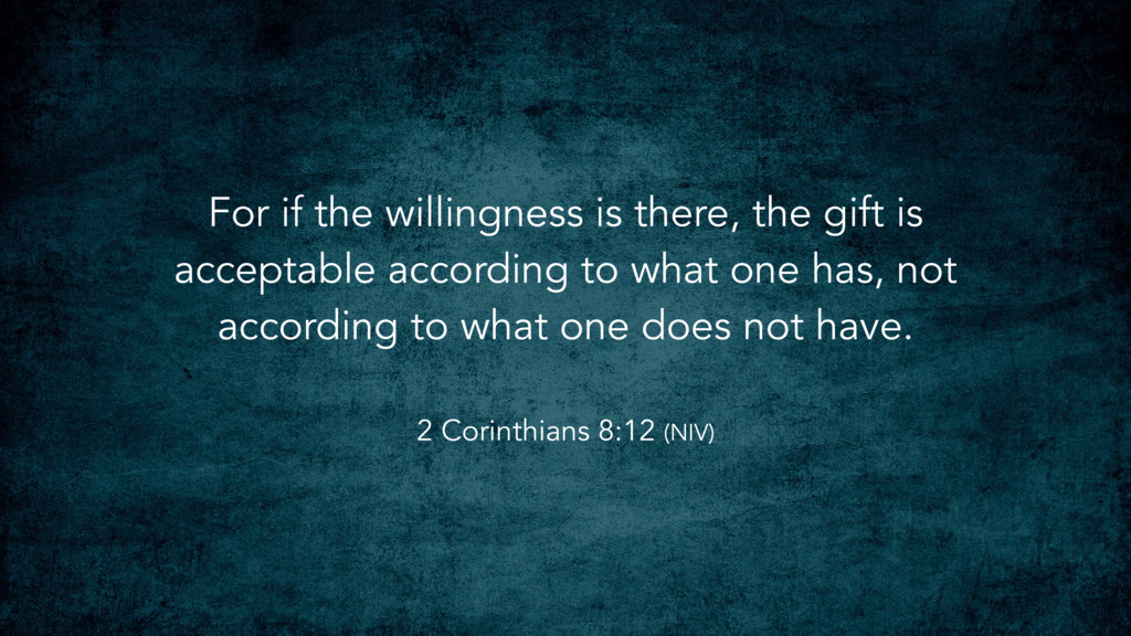 according to what one has, not according to what one does not have. 2 Corinthians 8:12 (NIV)