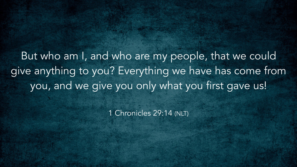 we could give anything to you? Everything we have has come from you, and we give you only what you first gave us! 1 Chronicles 29:14 (NLT)