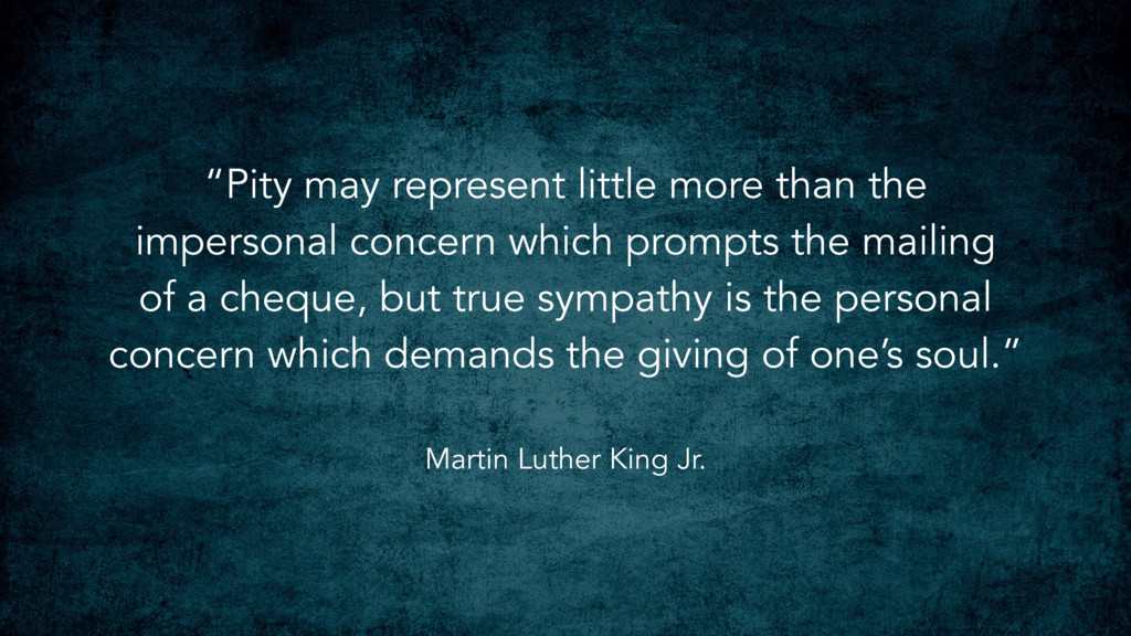 prompts the mailing of a cheque, but true sympathy is the personal concern which demands the giving of one’s soul.” Martin Luther King Jr.