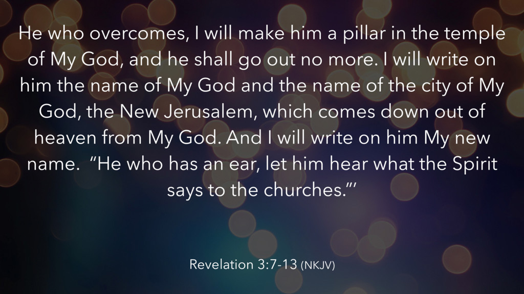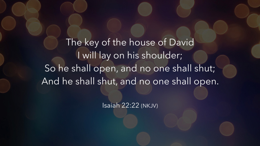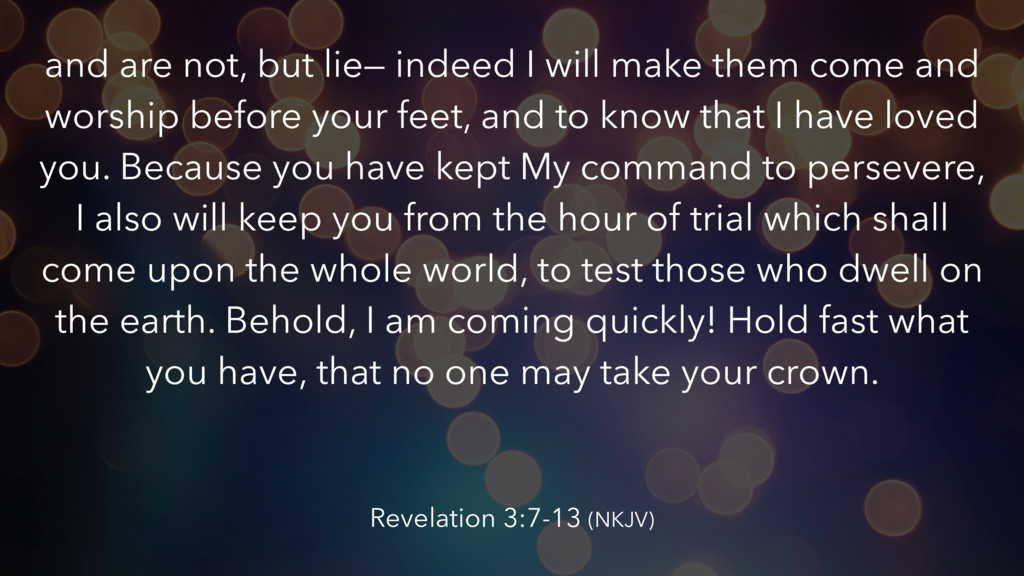 ‘These things says He who is holy, He who is true, “He who has the key of David, He who opens and no one shuts, and shuts and no one opens”:“I know your works. See, I have set before you an open door, and no one can shut it; for you have a little strength, have kept My word, and have not denied My name. Indeed I will make those of the synagogue of Satan, who say they are Jews Revelation 3:7-13 (NKJV)