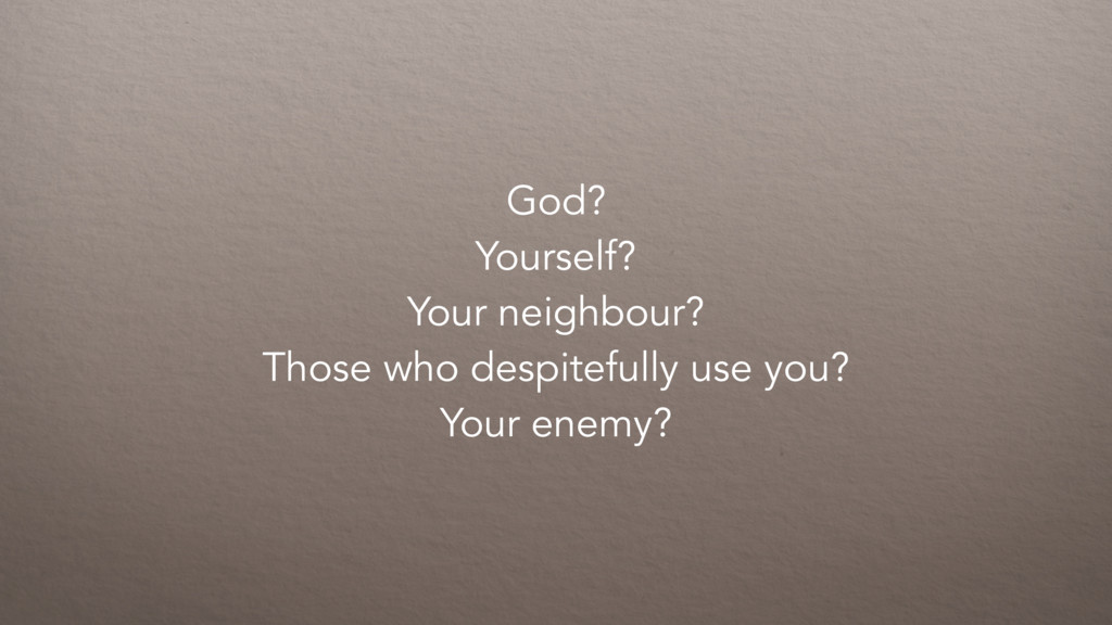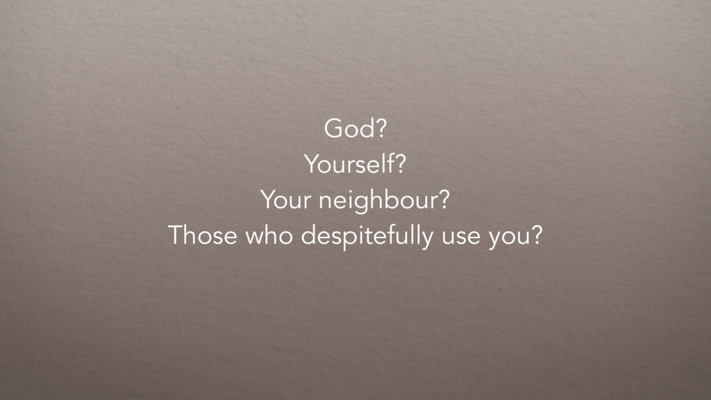 God? Yourself? Your neighbour? Those who despitefully use you? Your