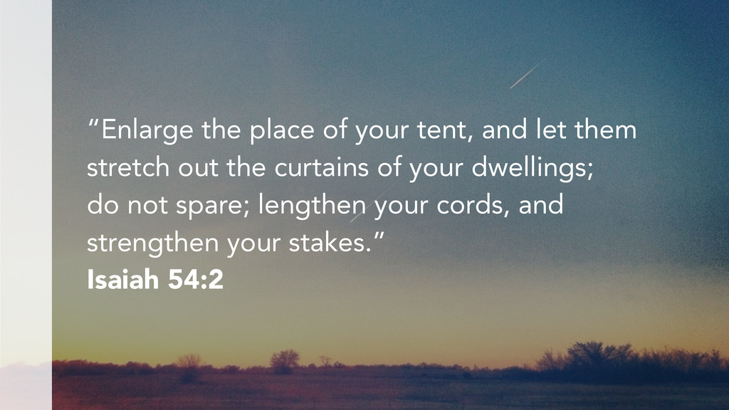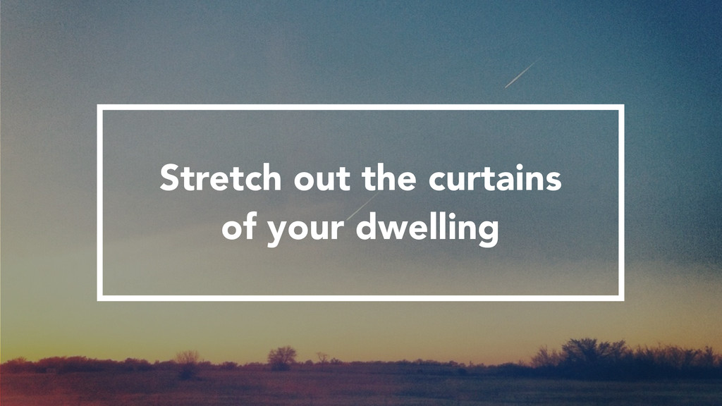 out the curtains of your dwellings; do not spare; lengthen your cords, and strengthen your stakes.” Isaiah 54:2