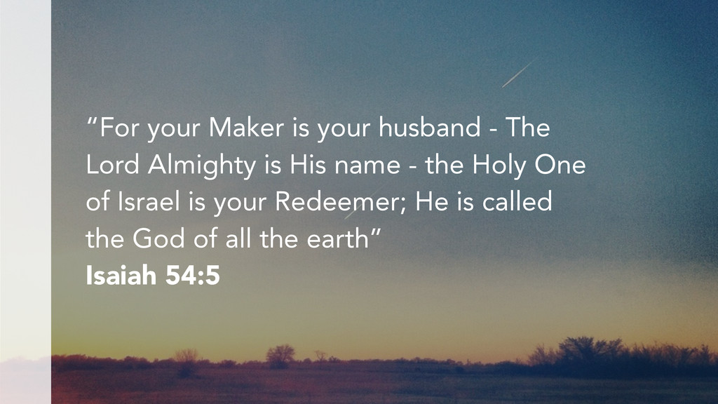 is His name - the Holy One of Israel is your Redeemer; He is called the God of all the earth” Isaiah 54:5