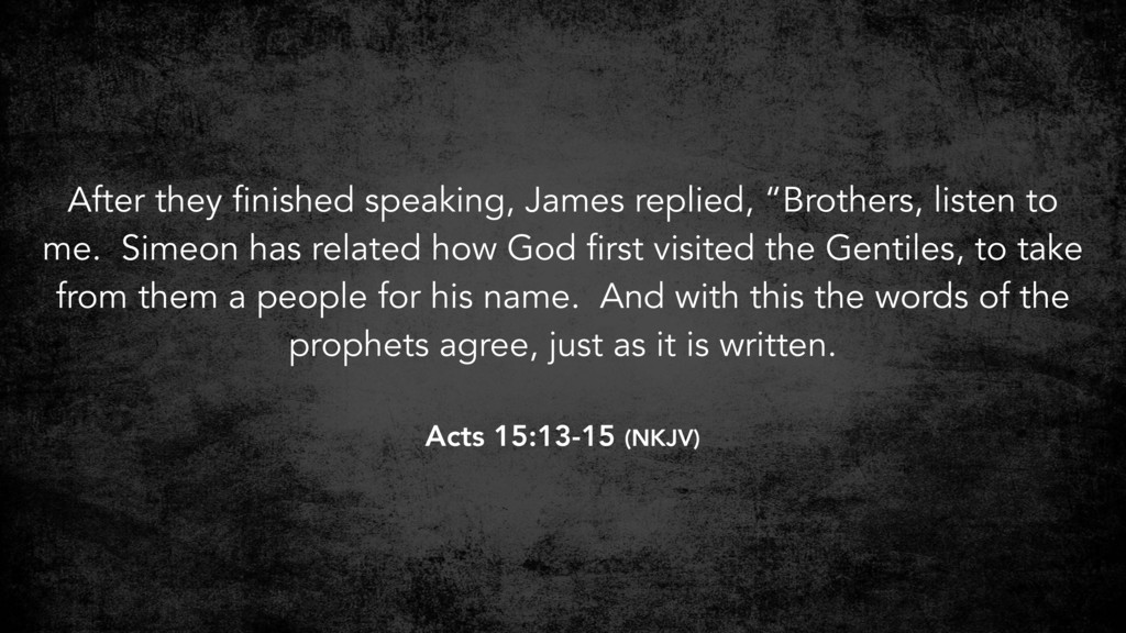 Simeon has related how God first visited the Gentiles, to take from them a people for his name. And with this the words of the prophets agree, just as it is written. Acts 15:13-15 (NKJV)