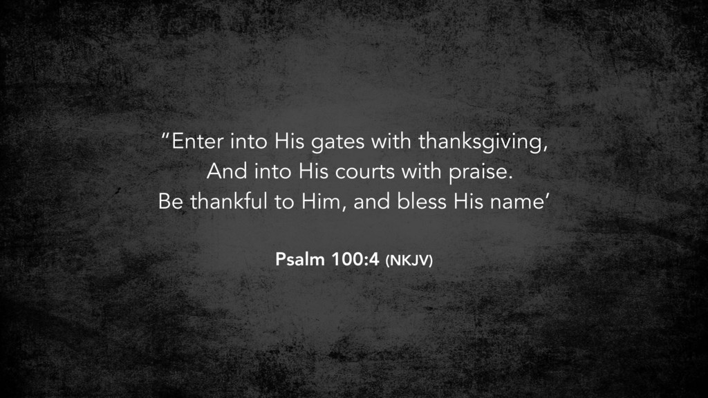 with praise. Be thankful to Him, and bless His name’ Psalm 100:4 (NKJV)