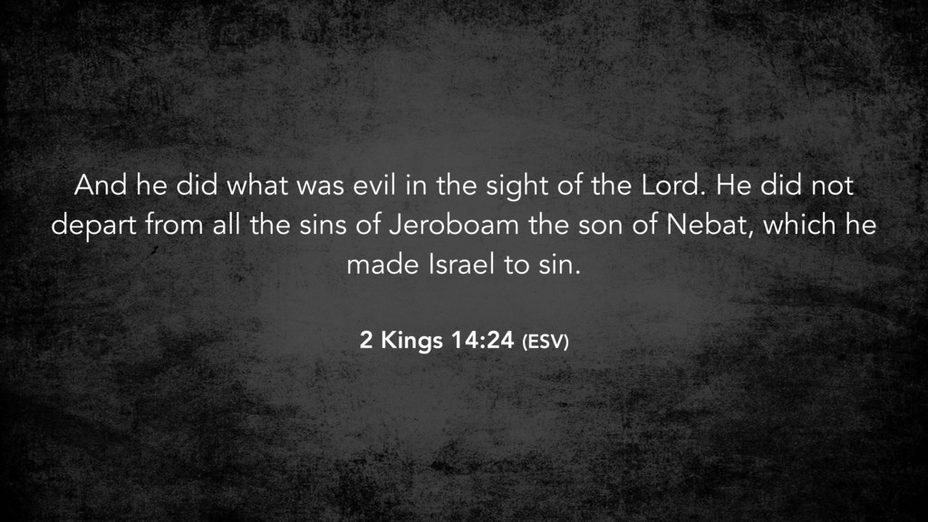 the Lord. He did not depart from all the sins of Jeroboam the son of Nebat, which he made Israel to sin. 2 Kings 14:24 (ESV)