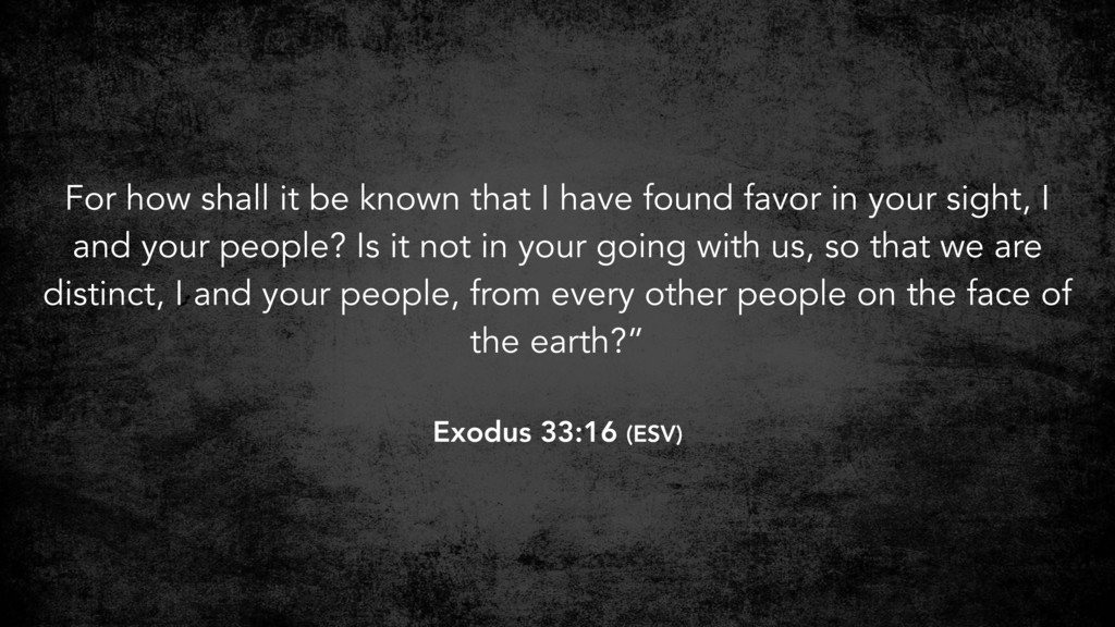 favor in your sight, I and your people? Is it not in your going with us, so that we are distinct, I and your people, from every other people on the face of the earth?” Exodus 33:16 (ESV)
