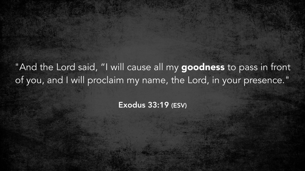 to pass in front of you, and I will proclaim my name, the Lord, in your presence." Exodus 33:19 (ESV)