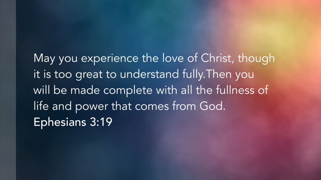 too great to understand fully.Then you will be made complete with all the fullness of life and power that comes from God. Ephesians 3:19
