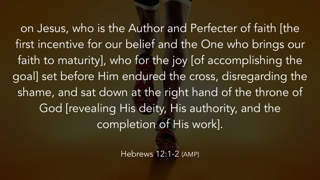 [the first incentive for our belief and the One who brings our faith to maturity], who for the joy [of accomplishing the goal] set before Him endured the cross, disregarding the shame, and sat down at the right hand of the throne of God [revealing His deity, His authority, and the completion of His work]. Hebrews 12:1-2 (AMP)