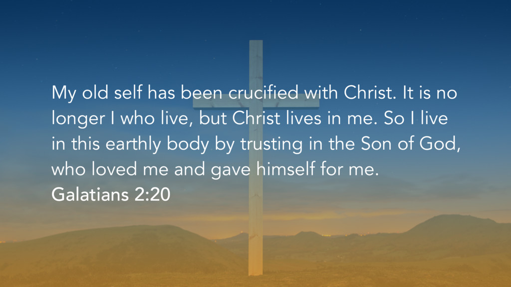 no longer I who live, but Christ lives in me. So I live in this earthly body by trusting in the Son of God, who loved me and gave himself for me. Galatians 2:20