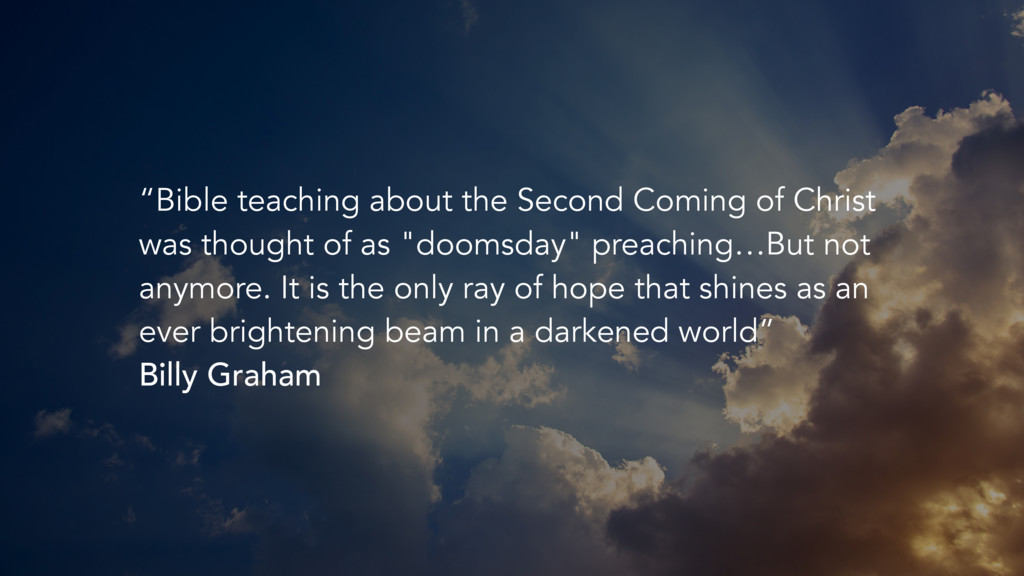 it will change every aspect of life on this planet...Christ will reign in righteousness. Disease will be arrested. Death will be modified. War abolished... Nature will be changed…Man will live as it was originally intended he should live" Billy Graham