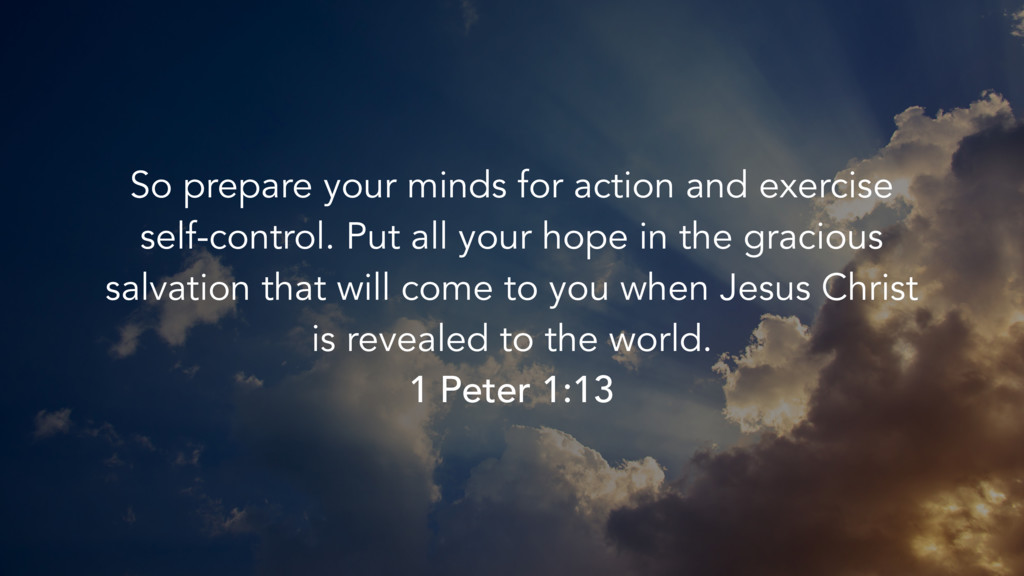 all your hope in the gracious salvation that will come to you when Jesus Christ is revealed to the world. 1 Peter 1:13