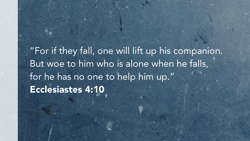 But woe to him who is alone when he falls, for he has no one to help him up.” Ecclesiastes 4:10