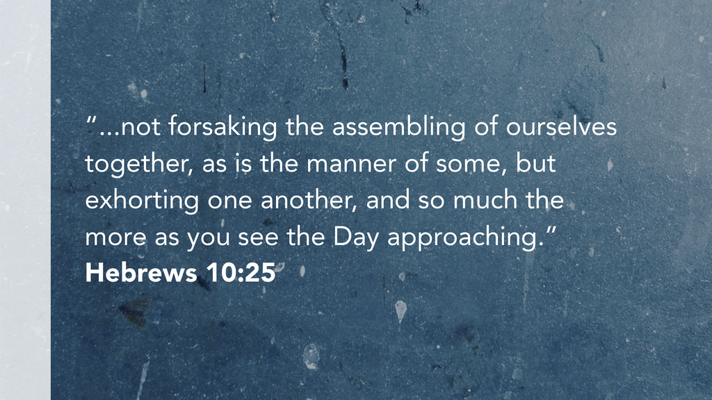 manner of some, but exhorting one another, and so much the more as you see the Day approaching.” Hebrews 10:25