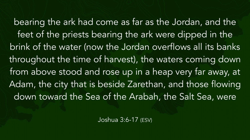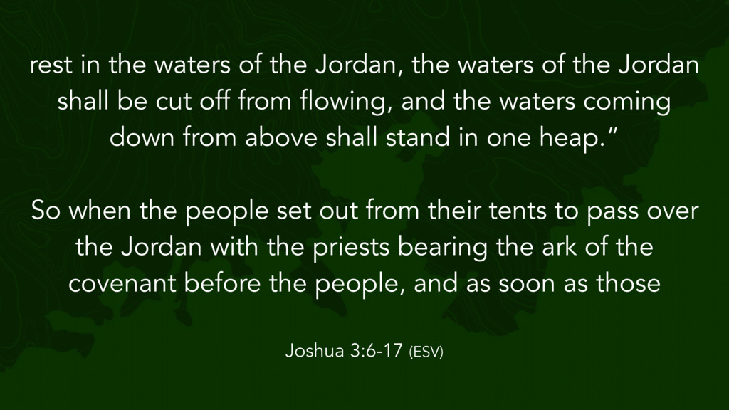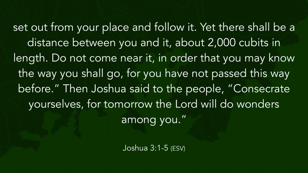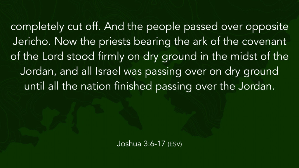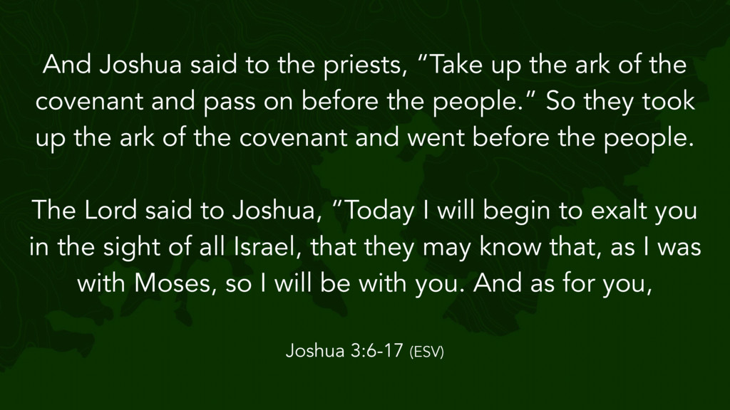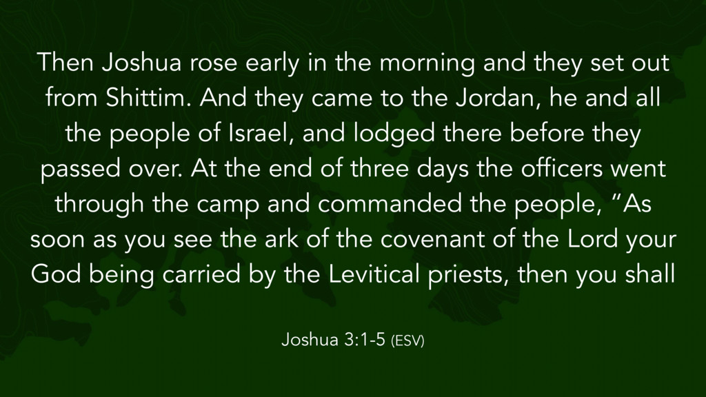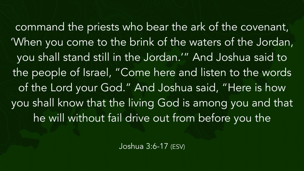 the Lord said to Joshua, “Take twelve men from the people, from each tribe a man, and command them, saying, ‘Take twelve stones from here out of the midst of the Jordan, from the very place where the priests' feet stood firmly, and bring them over with you and lay them down in the place where you lodge tonight.’” Then Joshua 4:1-7 (ESV)