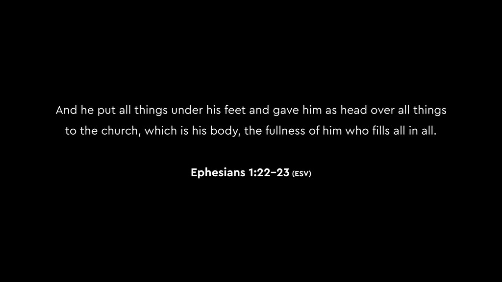 him as head over all things to the church, which is his body, the fullness of him who fills all in all. Ephesians 1:22–23 (ESV)