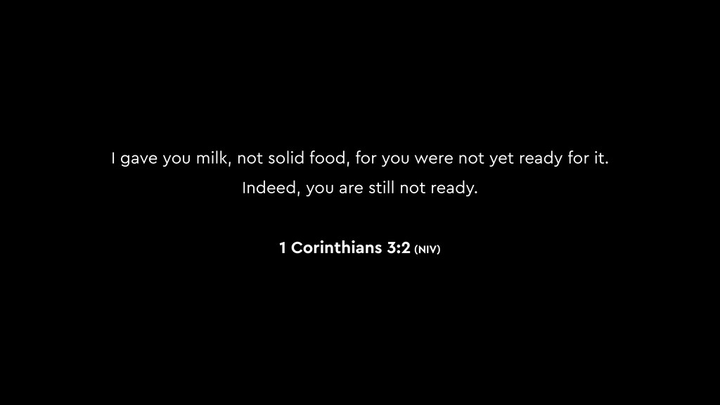 not yet ready for it. Indeed, you are still not ready. 1 Corinthians 3:2 (NIV)